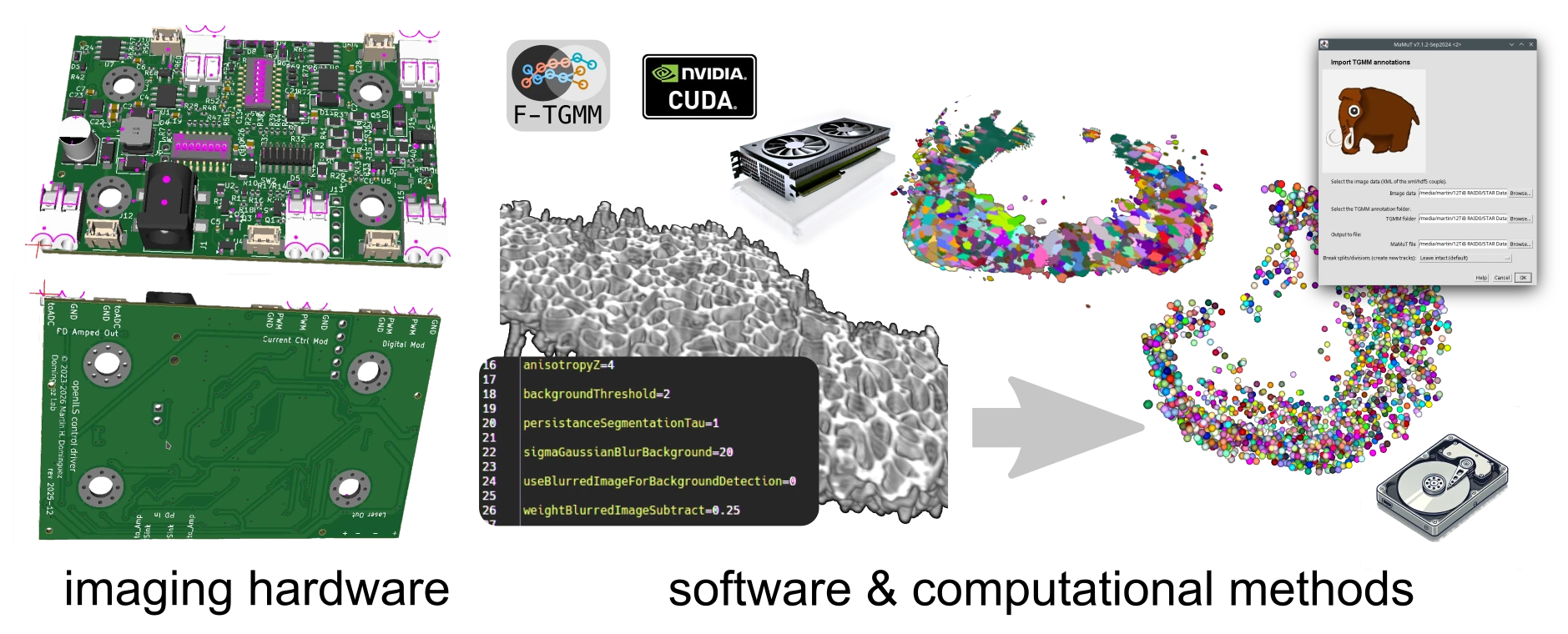 The Dominguez Lab explores how cells and tissues behave in real time within living mammals, using advanced 4D imaging techniques such as light-sheet, confocal, and multiphoton microscopy. Our overarching goal is to decode the cellular and molecular logic of cardiovascular development, injury, and regeneration. By combining intravital imaging with powerful machine learning or AI-based analysis, we transform massive imaging datasets into useful mechanistic models. We focus on understanding how mechanical forces shape heart and vessel function, and how these pathways go awry in disease. Committed to open science, we also develop and share reproducible hardware, software, and protocols to empower the broader research community.